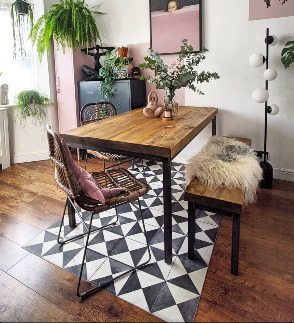 "The vinyl rug is by beijaflorworld and I have a few which I use to brighten up any space in our home and garden."