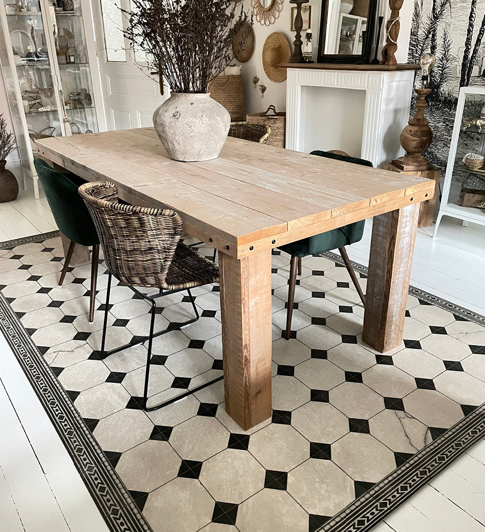 Our new vinyl rug from beija flor- a practical vinyl rug is best for a home with 3 children and 4-legged friends"