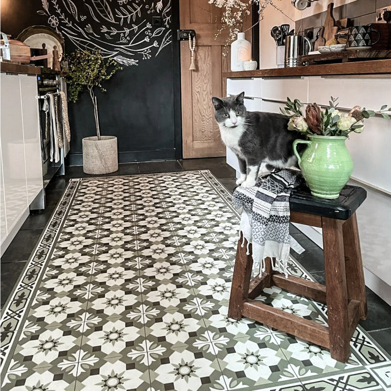 "I’m a huge fan of @beijaflorworld and their vinyl rugs. I just love it so much and this rug is one of the key pieces for my kitchen the boho colours & Mediterranean style i love so much, all tied up in this design. Go take a look at their rugs if you haven’t seen them before ( they have a beautiful website with lots of inspiring interiors that I could get lost in for hours!)